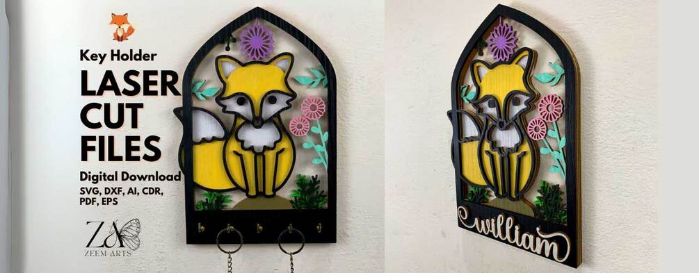 Fox Key Holder Laser Cut Files & SVG Files Template for Laser Cutting Machines