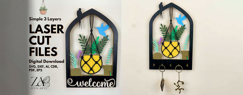 Hanging Planters Arch Key Holder Laser Cut Files & SVG Files Template for Laser Cutting Machines