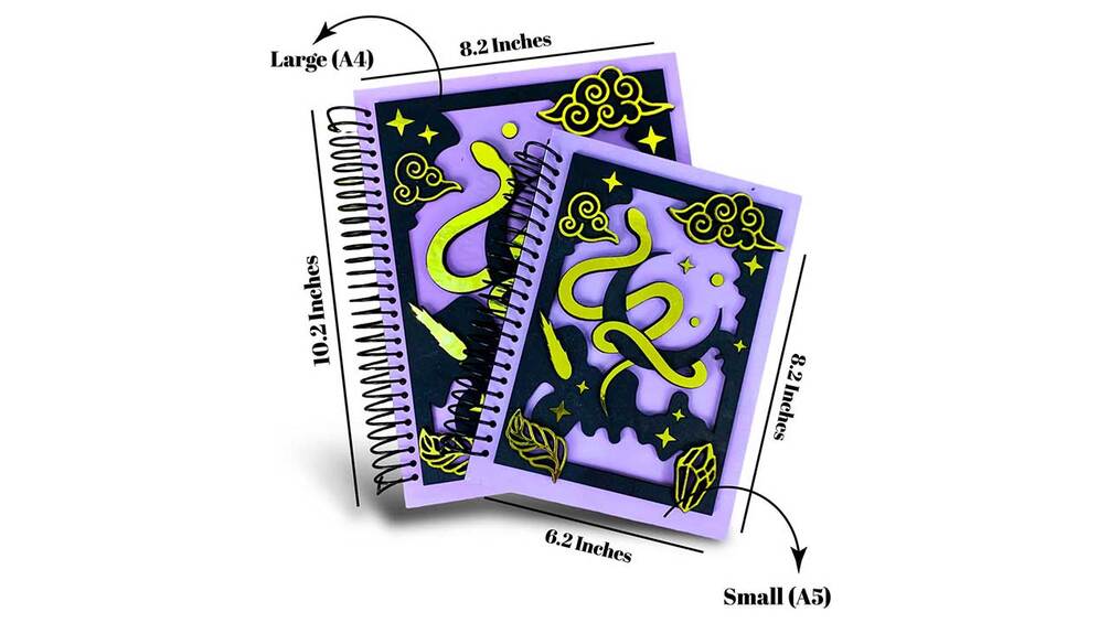 Handcrafted Mystical Moon & Snake Spiral Lined & Bullet Journal -200 Sheets - A4 & A5 Size -100gsm Paper - Mystical Jo